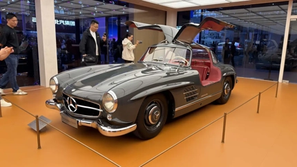 Emotional vehicles added a separate layer to the display. The orange Mercedes-AMG GT XX Concept in photos looks like a preview of AMG's future: the plaque notes that the concept covered 40,075 km in 7 days, 13 hours, and 24 minutes of non-stop driving at an average speed of 300 km/h, setting 25 world records. Nearby, Mercedes showed the 300 SL Coupe with gullwing doors—a legend from 1954, often called one of the most beautiful cars in history.