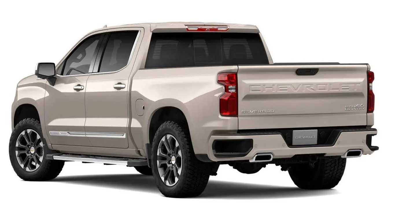2026年型シボレー・シルバラード1500の新色ホワイトサンズを含む外装カラーと、2.7Lターボから6.2L V8までのエンジンオプションを紹介。購入情報をチェック。