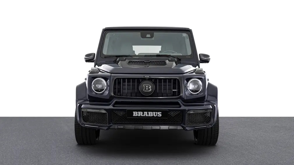 От стандартного «заряженного» G-Class, данный автомобиль отличается полным внешним пакетом ателье Brabus, в который входит карбоновый обвес, передняя и задняя юбки с декоративными деталями, передние и задние расширители крыльев, карбоновая накладка на капот авто, надстройки на крыше со светодиодными элементами, специальные 23-дюймовые колёсные диски, а также фирменная эмблема Brabus на радиаторной решетке с подсветкой.
