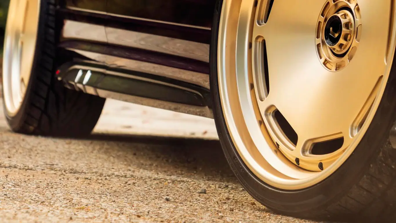 Автомобиль окрашен в насыщенный фиолетовый цвет и установлен на трехсоставные колесные диски Vossen GEN-06 из алюминиевого сплава 6061. Центральные части дисков выполнены в оттенке Brushed Patina Gold, а внешние элементы имеют полированную отделку Patina Gold. За счет заниженной посадки и контрастных элементов RS Q8 выделяется даже в статичном положении.